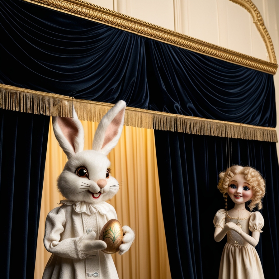 Lá vem o coelhinho da Páscoa todo contente. Uma menina não se empolga com as palavras e o agito do