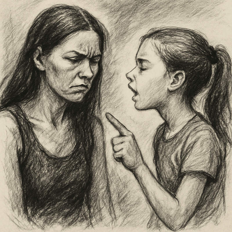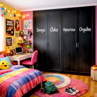 Um quarto escuro, porta se abrindoUma menina leva sua vida normal, as vezes reclama, as vezes sente ciúmes, as vezes
