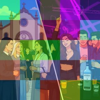 Usando uma forma caricata, alguns jovens conversam sobre as “coisas da igreja.”Pra ser mais preciso, estes jovens tentam justificar suas