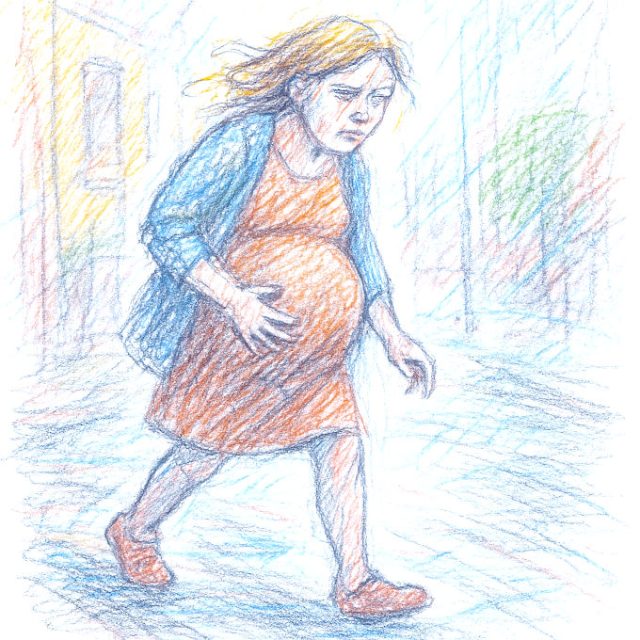 MAG: (sente contrações e coloca as duas mãos na barriga) Minha bolsa estourou…