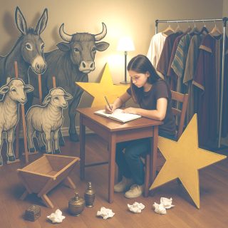 O drama da menina que ficou responsável pela preparação da peça de natal.No desespero vai tentando… “Uma cena, eu fiz