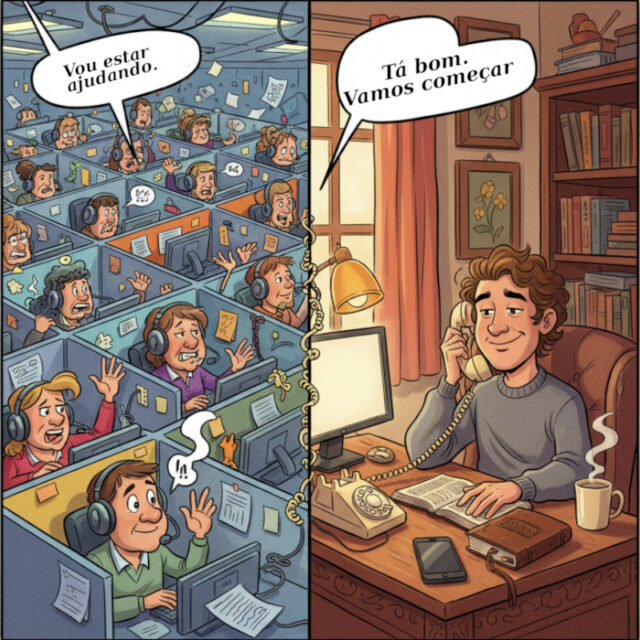 Paródia do suporte técnico de informática.